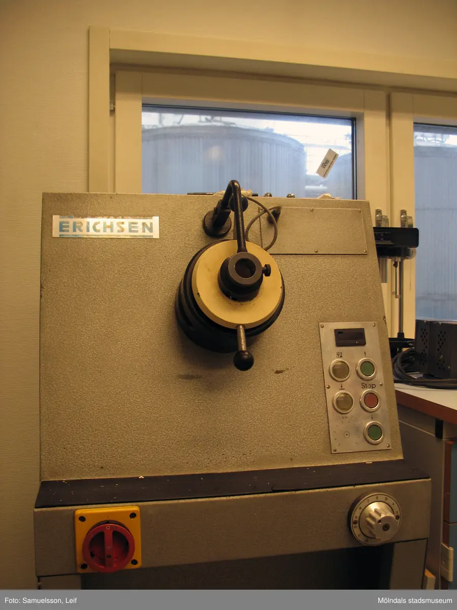 En apparat av märket Erichsen. Interiörfotografi från byggnad vid Soabs industrianläggning i Mölndals Kvarnby, år 2007. Anläggningen användes vid fototillfället av Hexion Speciality Chemicals Sweden AB.