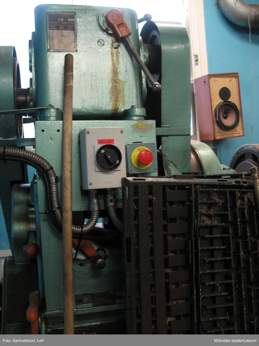 Verkstadsmiljö. En maskin. Interiörfotografi från byggnad vid Soabs industrianläggning i Mölndals Kvarnby, år 2007. Anläggningen användes vid fototillfället av Hexion Speciality Chemicals Sweden AB.