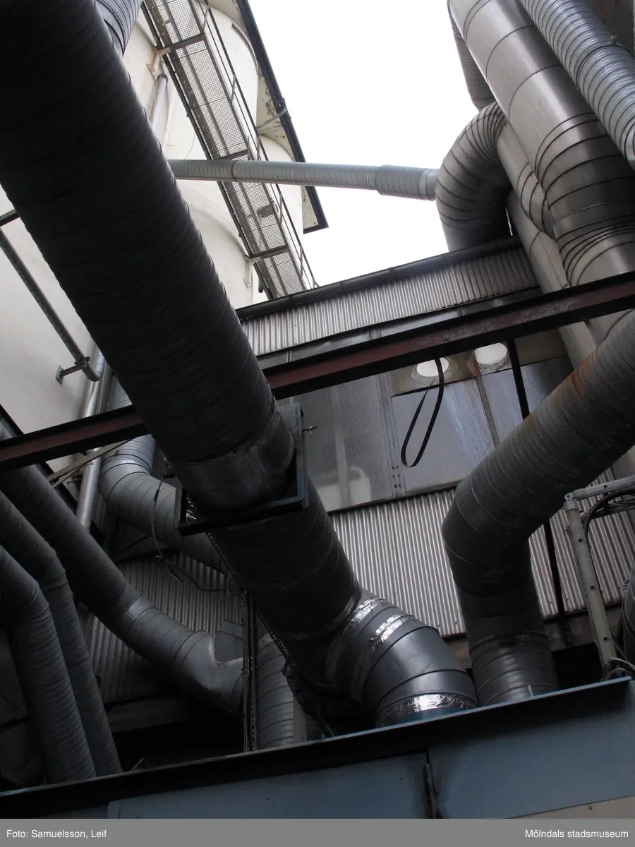 Titel: Byggnader vid Soabs industrianläggning i Mölndals Kvarnby, år 2007. Vid byggnaderna ses en mängd rör. Anläggningen användes vid fototillfället av Hexion Speciality Chemicals Sweden AB.