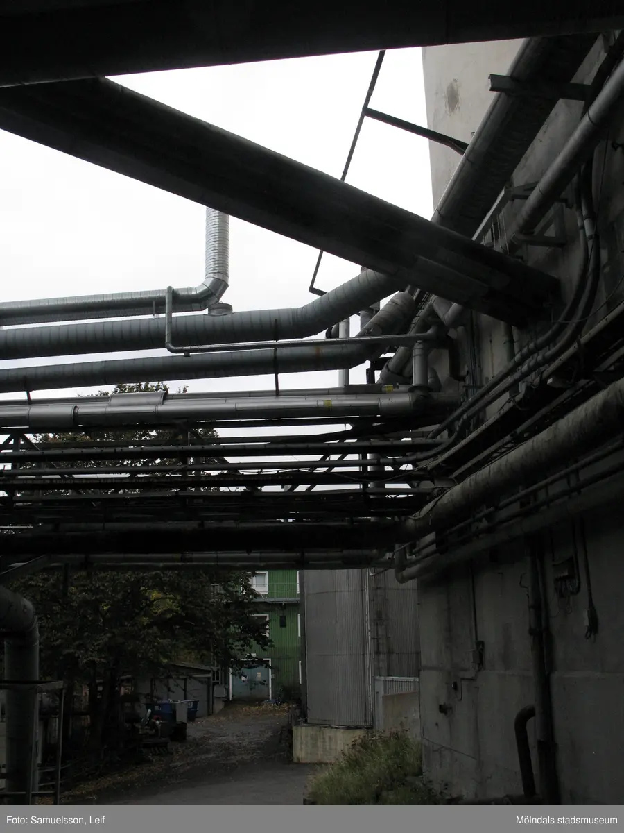 Titel: Byggnader vid Soabs industrianläggning i Mölndals Kvarnby, år 2007. Vid byggnaderna ses en mängd rör. Anläggningen användes vid fototillfället av Hexion Speciality Chemicals Sweden AB.
