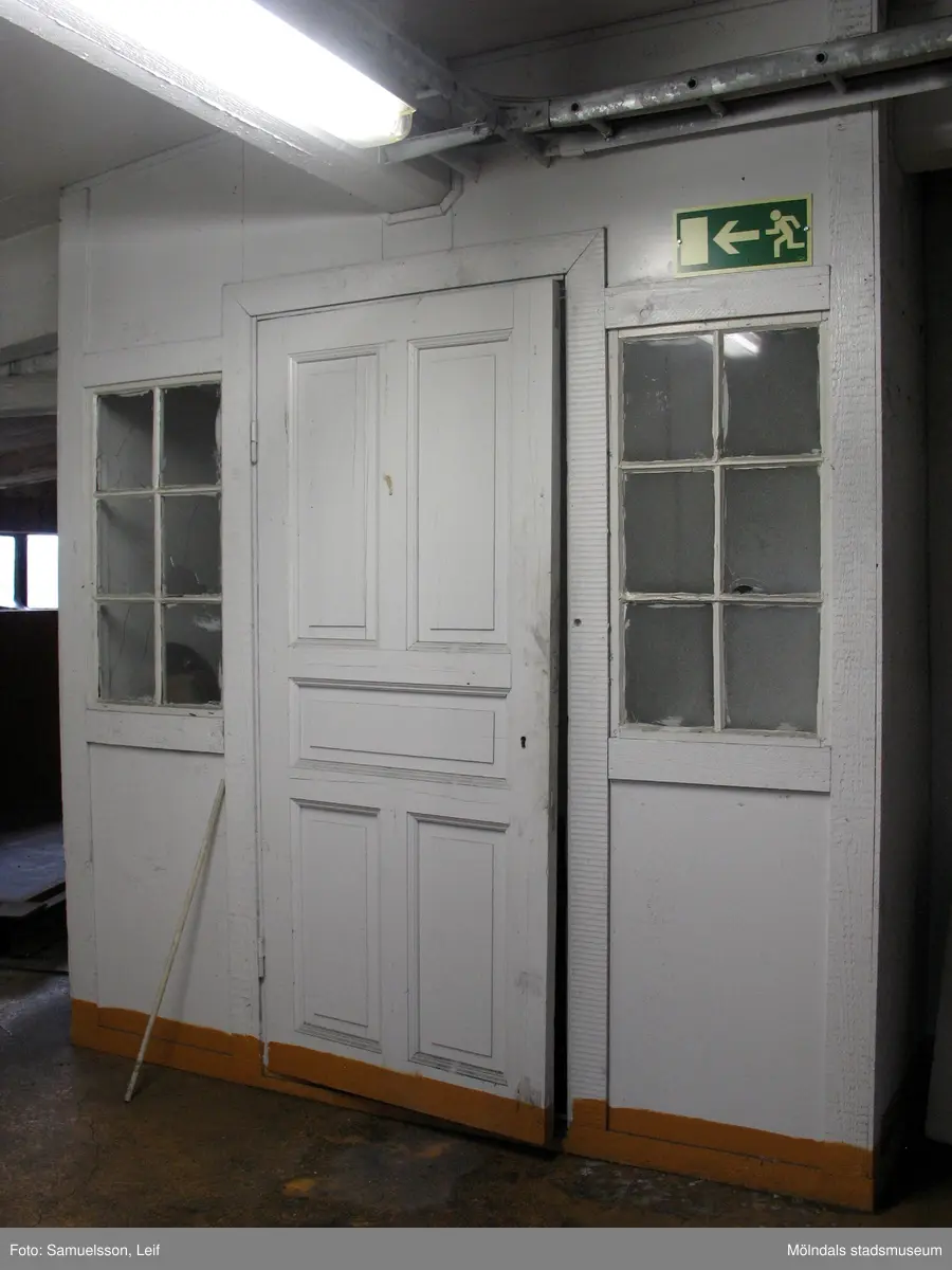 En vitmålad kur. Interiörfotografi från byggnad vid Soabs industrianläggning i Mölndals Kvarnby, år 2007. Anläggningen användes vid fototillfället av Hexion Speciality Chemicals Sweden AB.