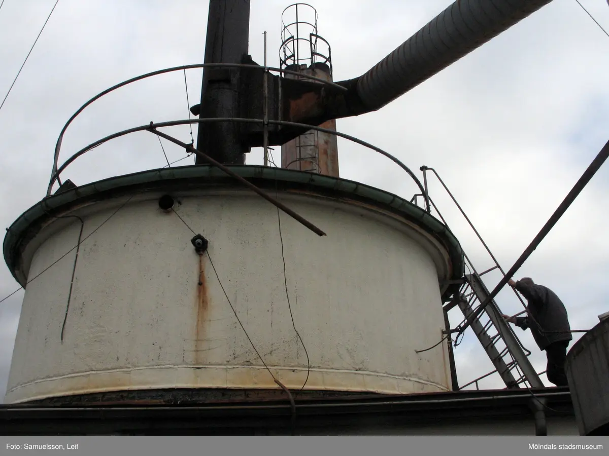 Titel: På taket av byggnad vid Soabs industrianläggning i Mölndals Kvarnby, år 2007. Anläggningen användes vid fototillfället av Hexion Speciality Chemicals Sweden AB.