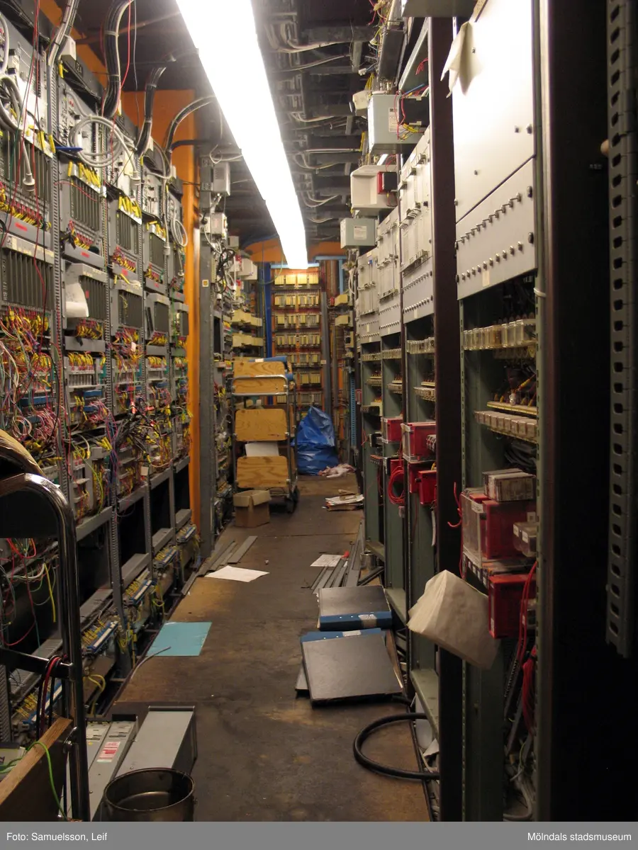 Utrymme med elektronik. Interiörfotografi från byggnad vid Soabs industrianläggning i Mölndals Kvarnby, år 2007. Anläggningen användes vid fototillfället av Hexion Speciality Chemicals Sweden AB.