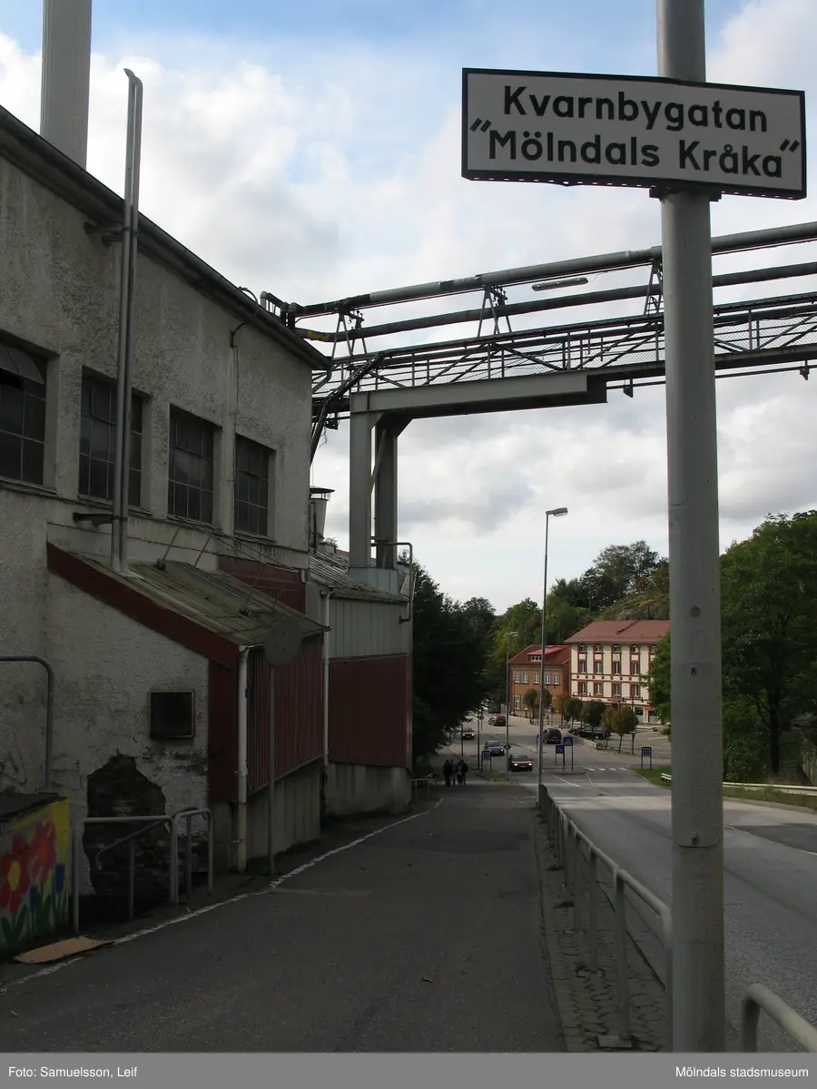 "Kråkan", Kvarnbygatan, vid Soabs industrianläggning i Mölndals Kvarnby, år 2007. I fonden byggnader vid Gamla torget. Anläggningen användes vid fototillfället av Hexion Speciality Chemicals Sweden AB.