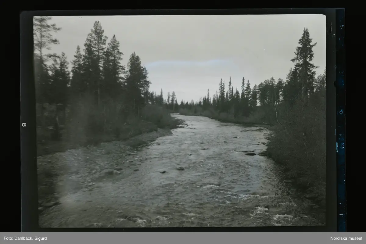 Anteckning påsiktskopia: ”Norrbotten, Gällivare sn. Linaälv sedd från Linabron över Vottasjärvivägen."