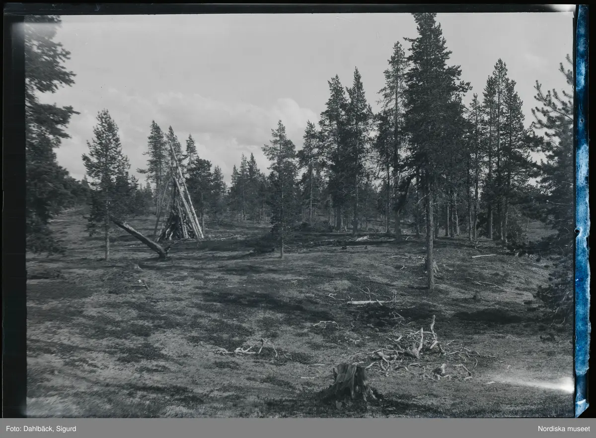 Anteckning påsiktskopia: ”Norrbotten, Gällivare sn. nära Neitisuando vid Kaitum älv. Veduppställning för hemkörning på vinterföre."