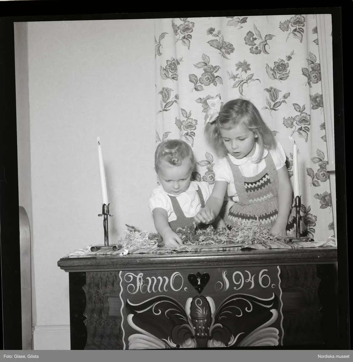Narving Arvid, familjen, Södertälje, 1946 (barnen i julförberedelser).