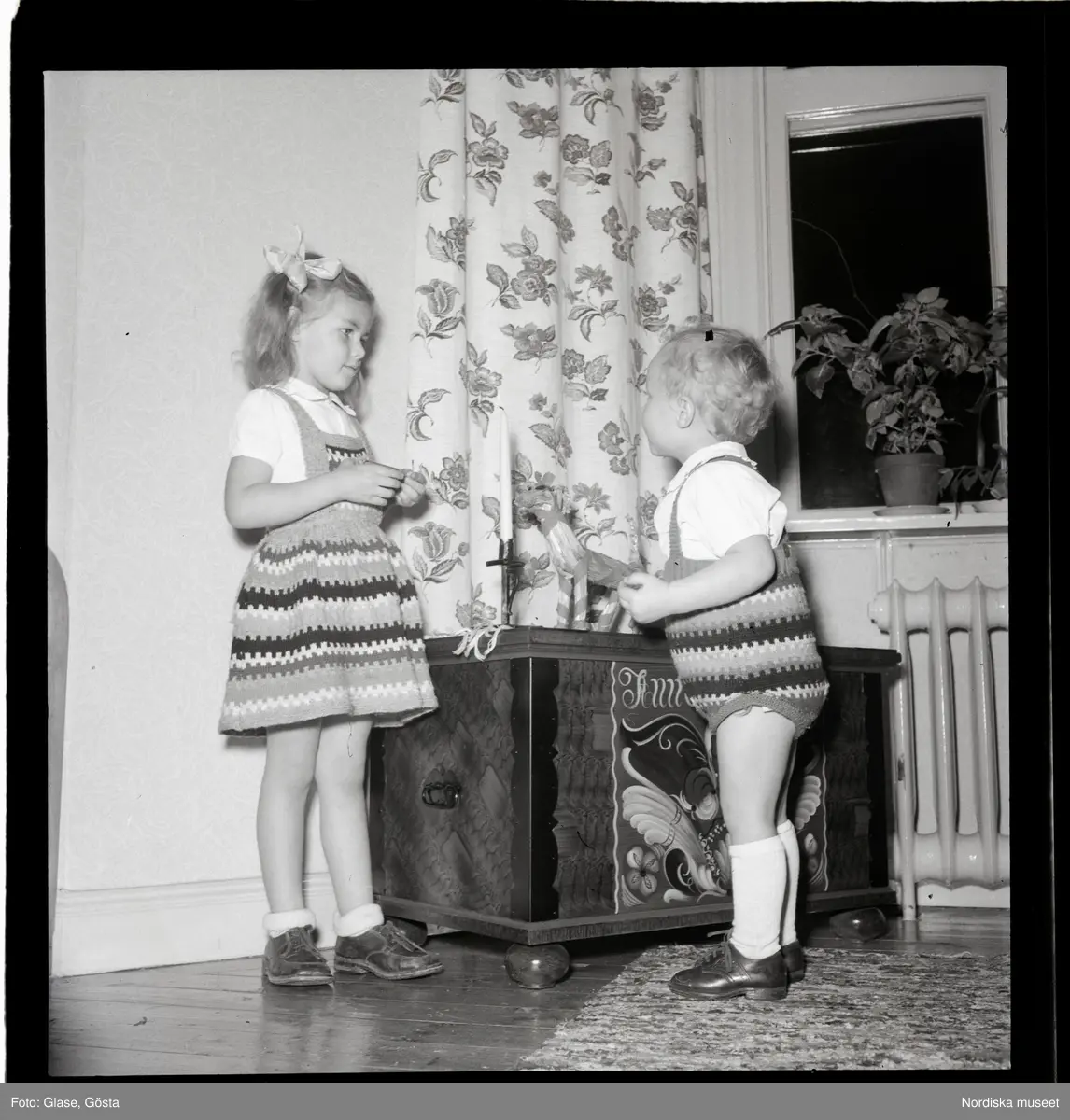 Narving Arvid, familjen, Södertälje, 1946 (barnen i julförberedelser).