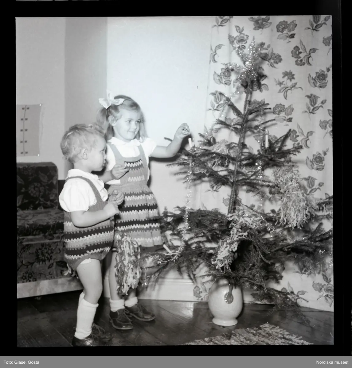 Narving Arvid, familjen, Södertälje, 1946 (barnen i julförberedelser).