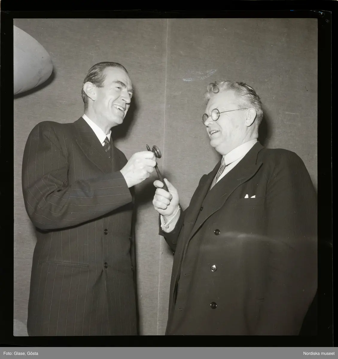 Oxenstierna, J.G. till vänster ordförande i SKK (till höger Bergvall).