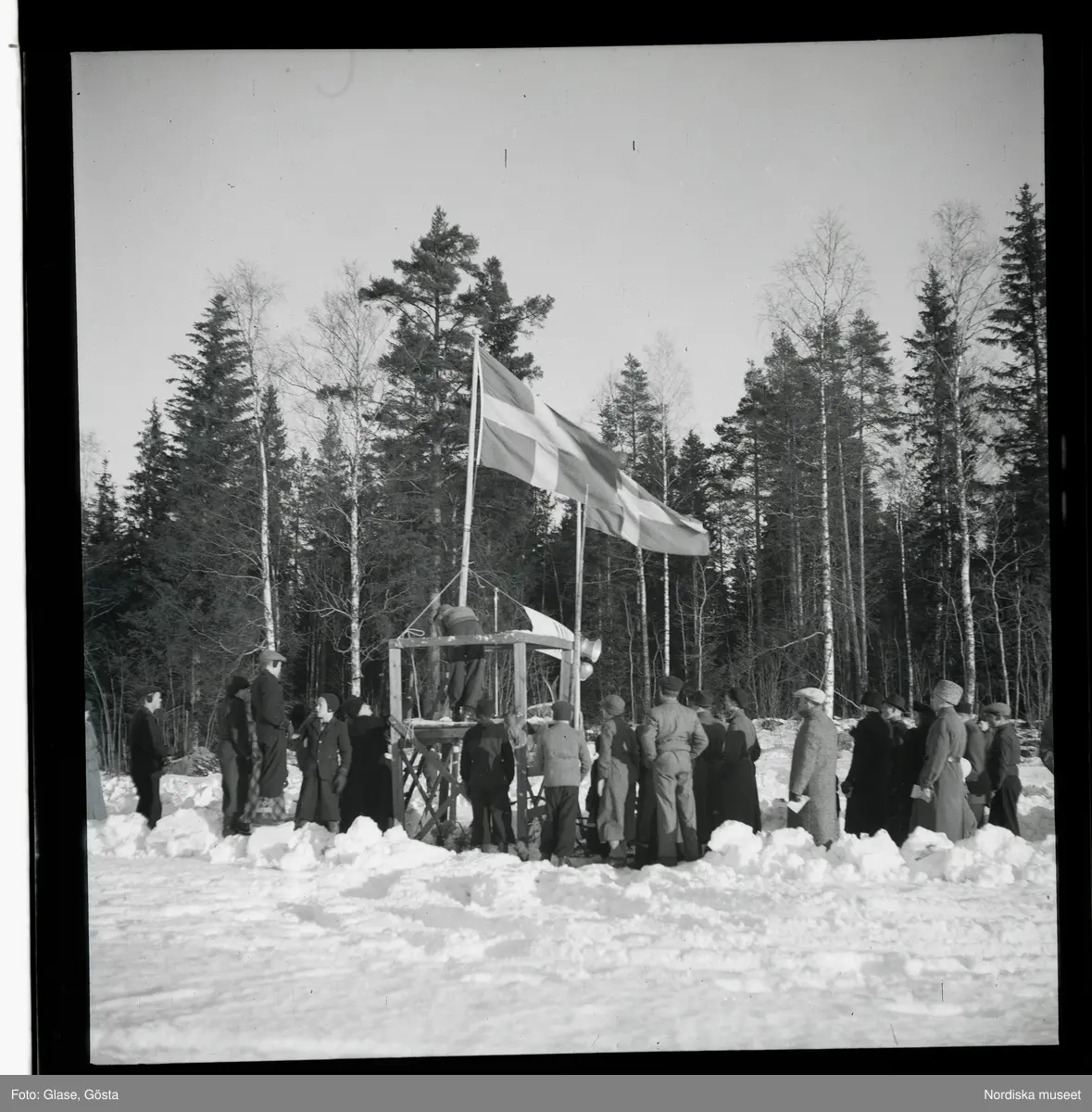 Titel: Hofors, skidtävling, varvlopp med Nisse Täpp som segrar före Östensson, 31 december 1944.