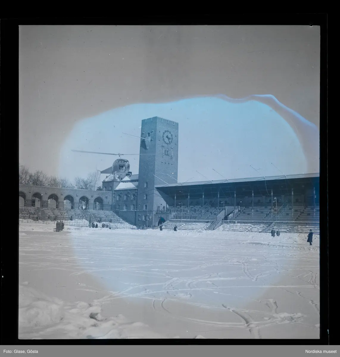 Helikoptern landar på Stadion, 1947.