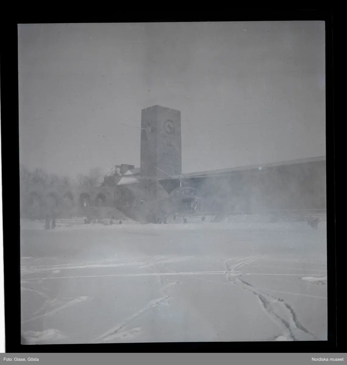 Helikoptern landar på Stadion, 1947.