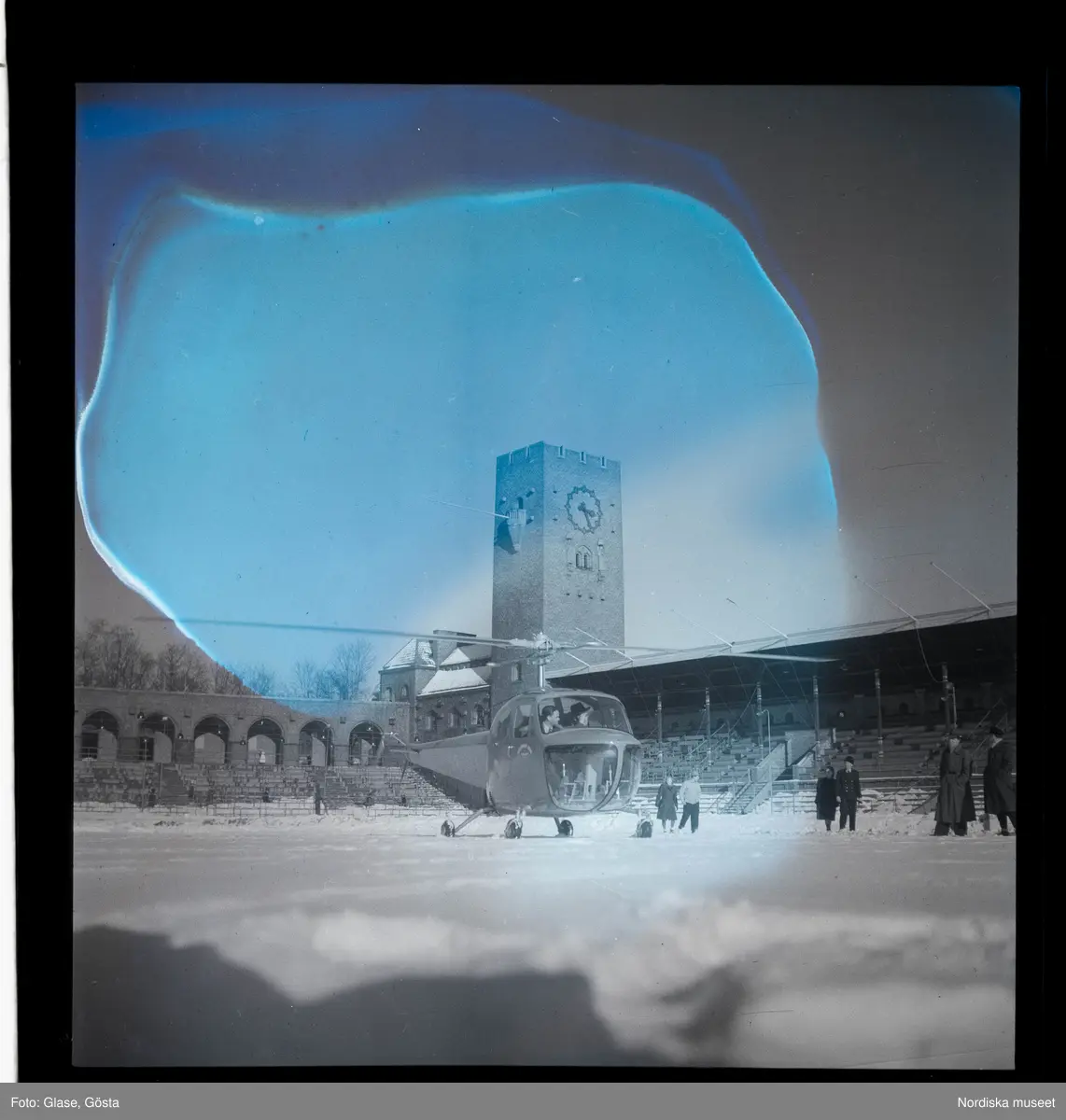 Helikoptern landar på Stadion, 1947.