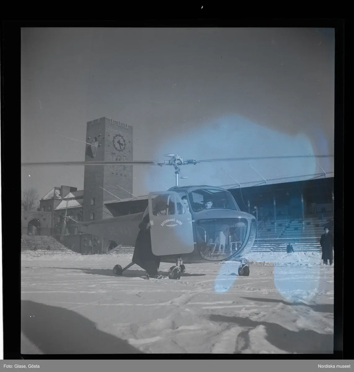 Helikoptern landar på Stadion, 1947.