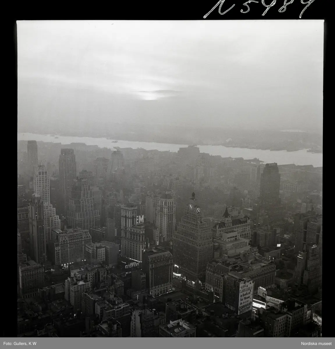 Titel: 1690 New York allmänt (N.Y. Herald Tribune). Vy över stadens skyskrapor.