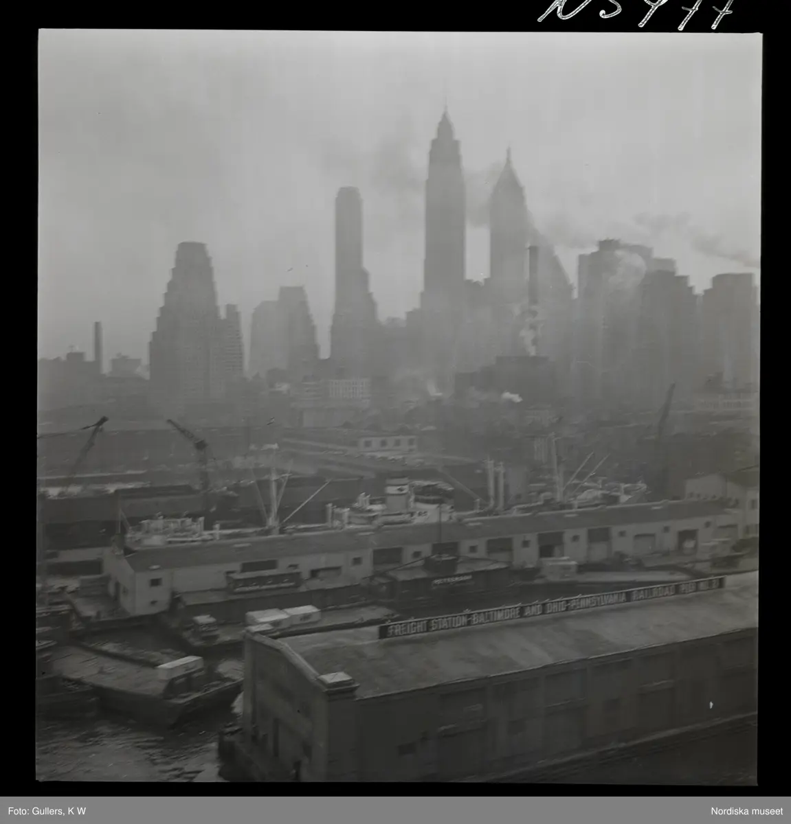 1690 New York allmänt (N.Y. Herald Tribune). Pirar med magasin, skyskrapor.