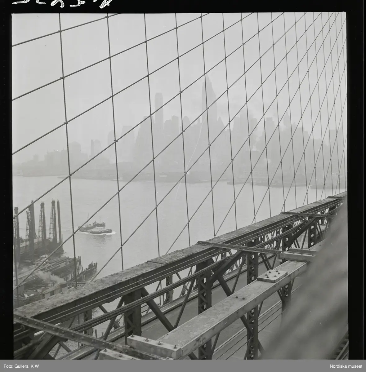 1690 New York allmänt (N.Y. Herald Tribune). Vy över skyline från bro.
