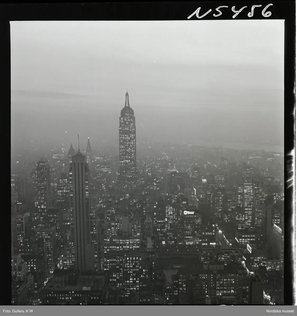 1690 New York allmänt (N.Y. Herald Tribune). Kvälls-/ nattbild. Skyskrapor.