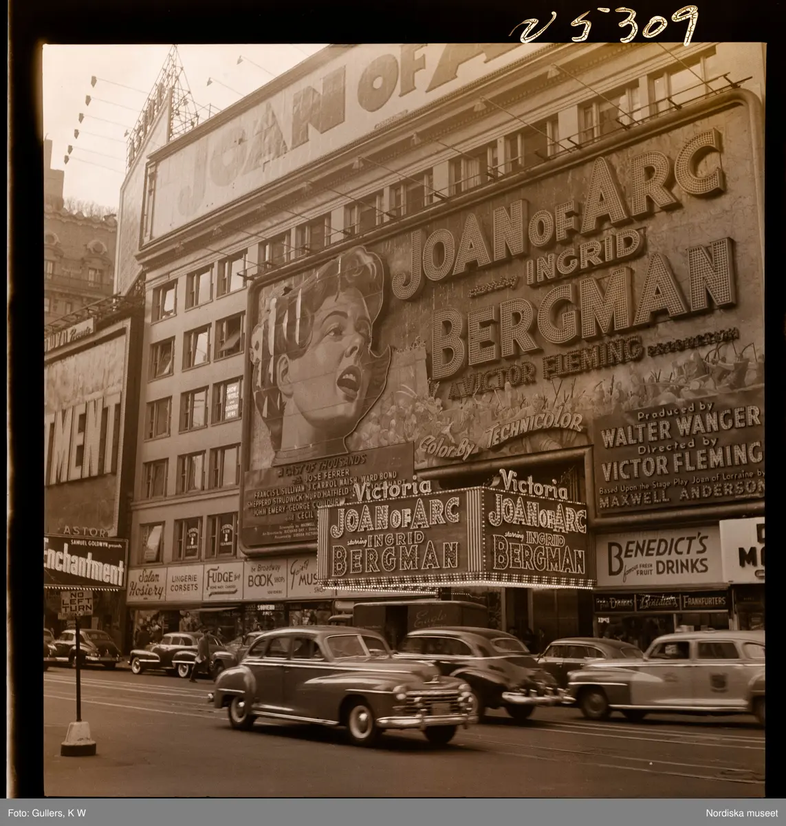 1690 New York allmänt (N.Y. Herald Tribune). Reklam/ annonsering på biograf Victoria för filmen "Joan of Arc" med Ingrid Bergman i huvudrollen.
