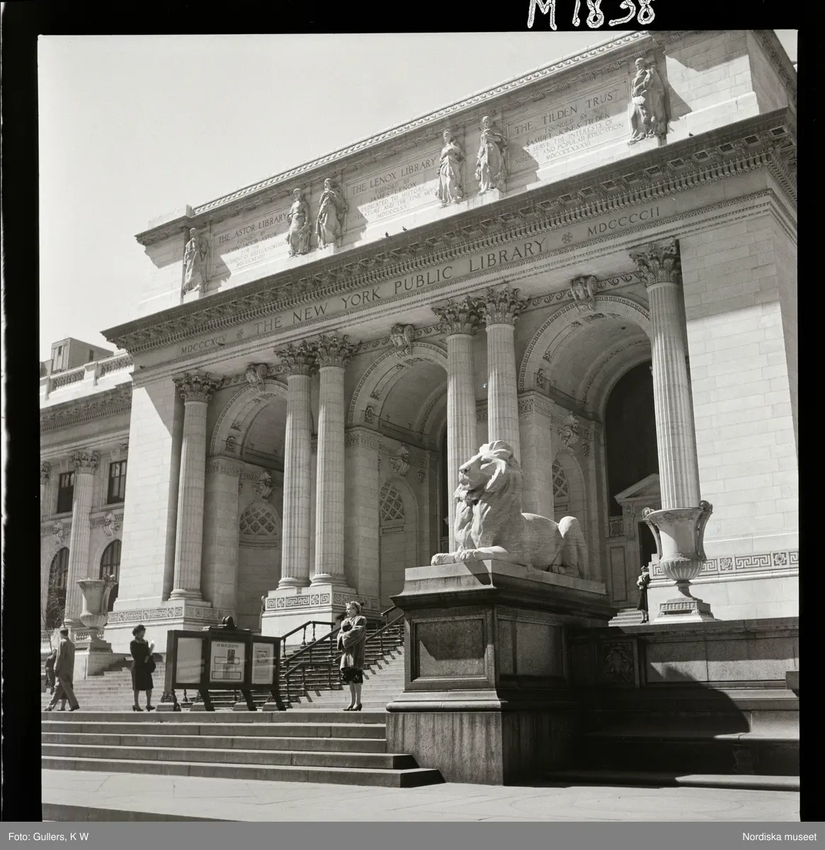 1690 A New York, allmänt. Trappan till biblioteksbyggnaden the New York public library.