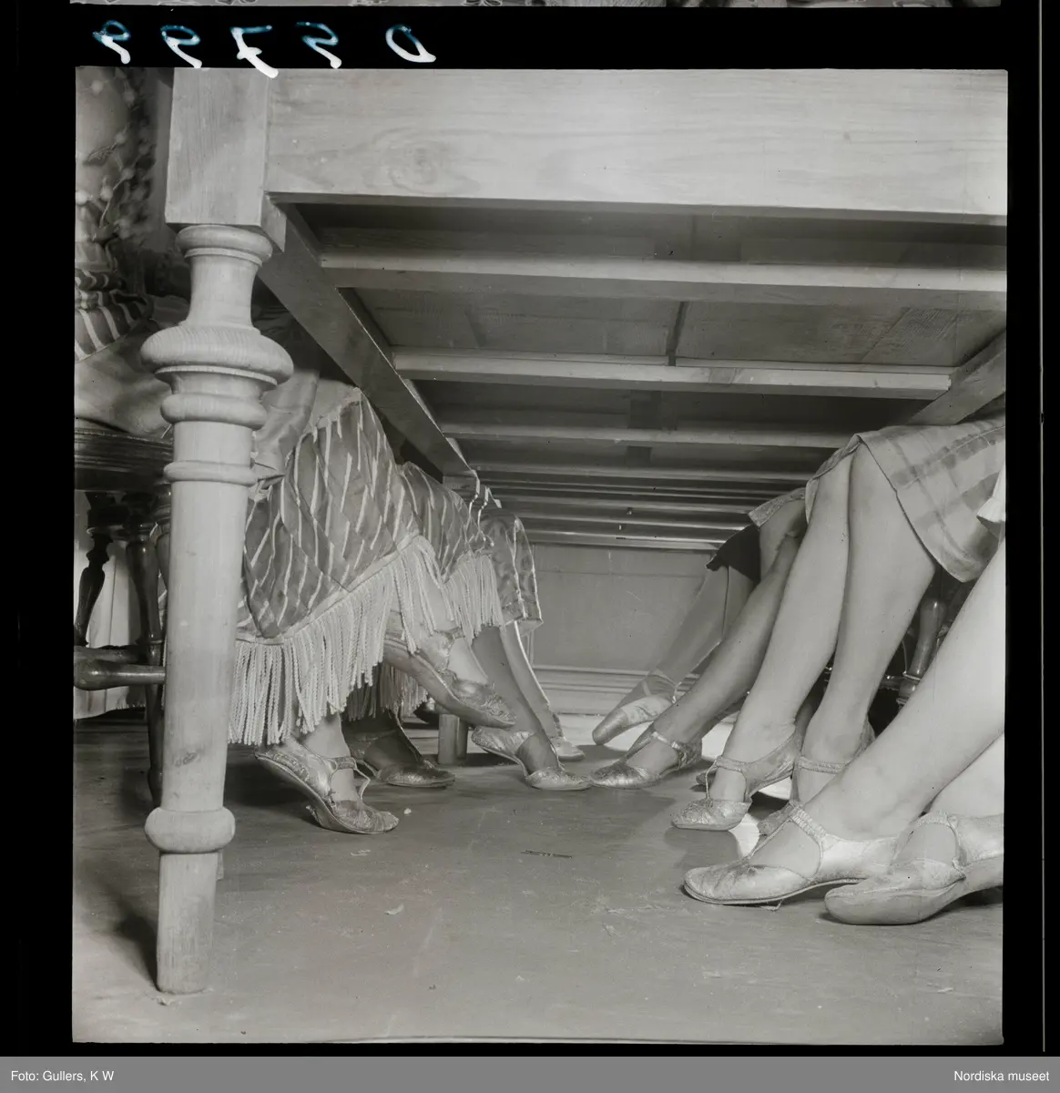 561 Operan för Allers. Kvinnliga dansares fötter under ett bord.