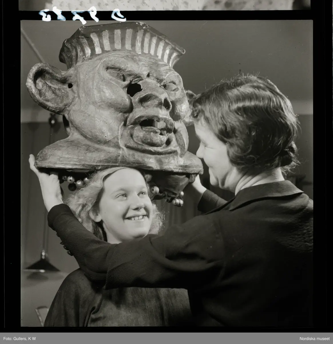 561 Operan för Allers. Två kvinnor, en provar en mask.