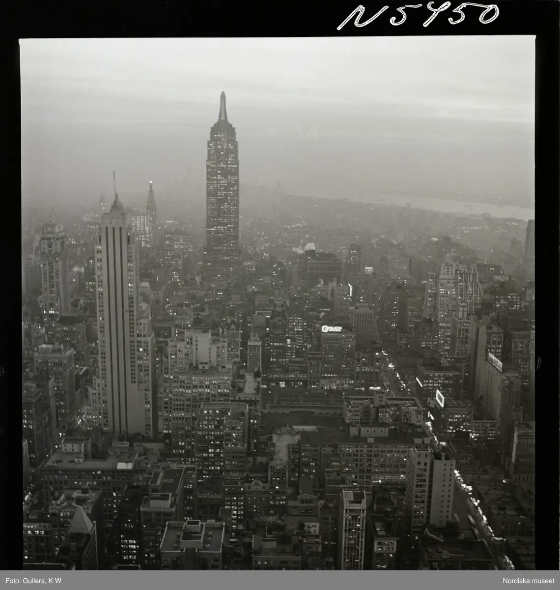 1690 New York allmänt (N.Y. Herald Tribune). Vy över stadens skyskrapor.