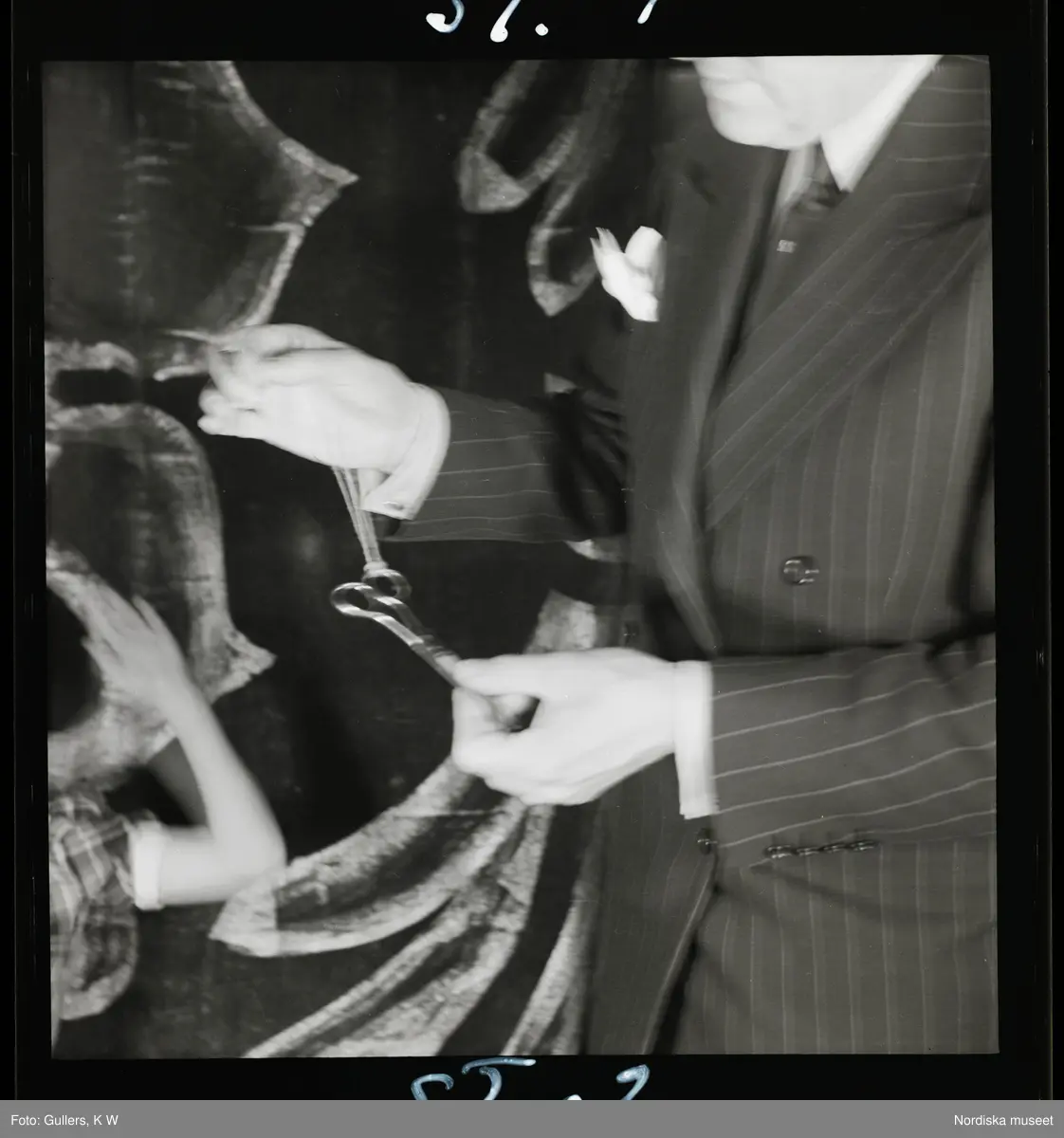 568 Trenters reportage. En man utför trolleri-trick med en sax på snöre.