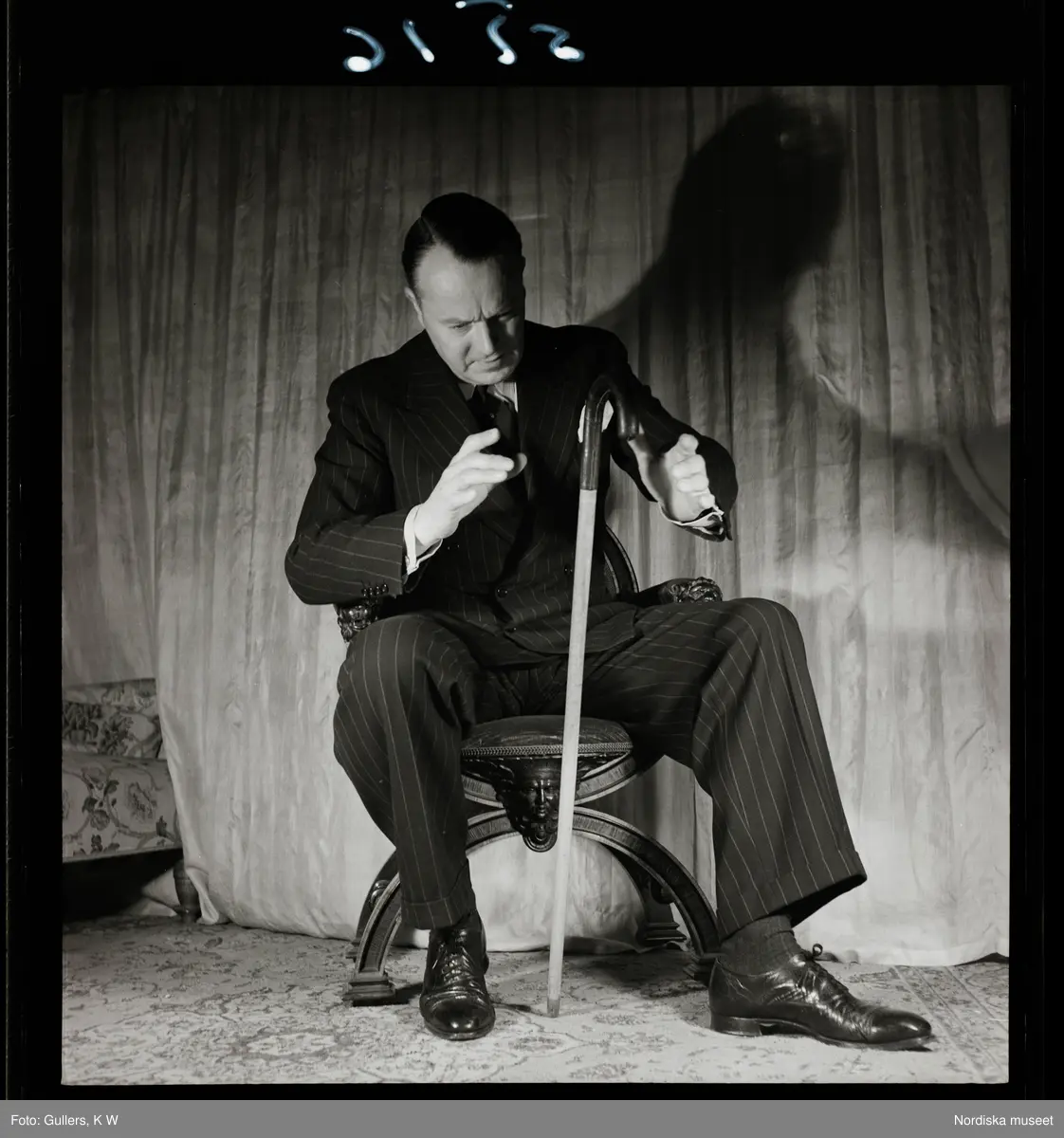 568 Trenters reportage. En man utför trolleri-trick med en käpp.