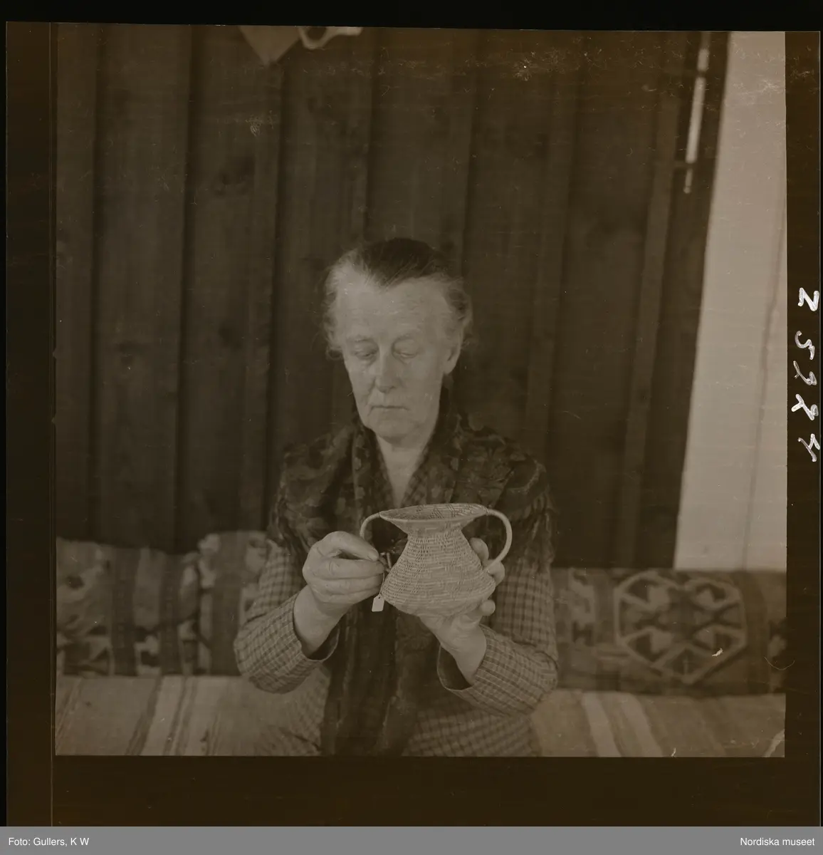 2380 Nilsson Fröken, Majvägen 7, Bromma Handarbete-korgflätning-tagn. Svensk Hemslöjd; vid Spinnrocken Jan. 57
