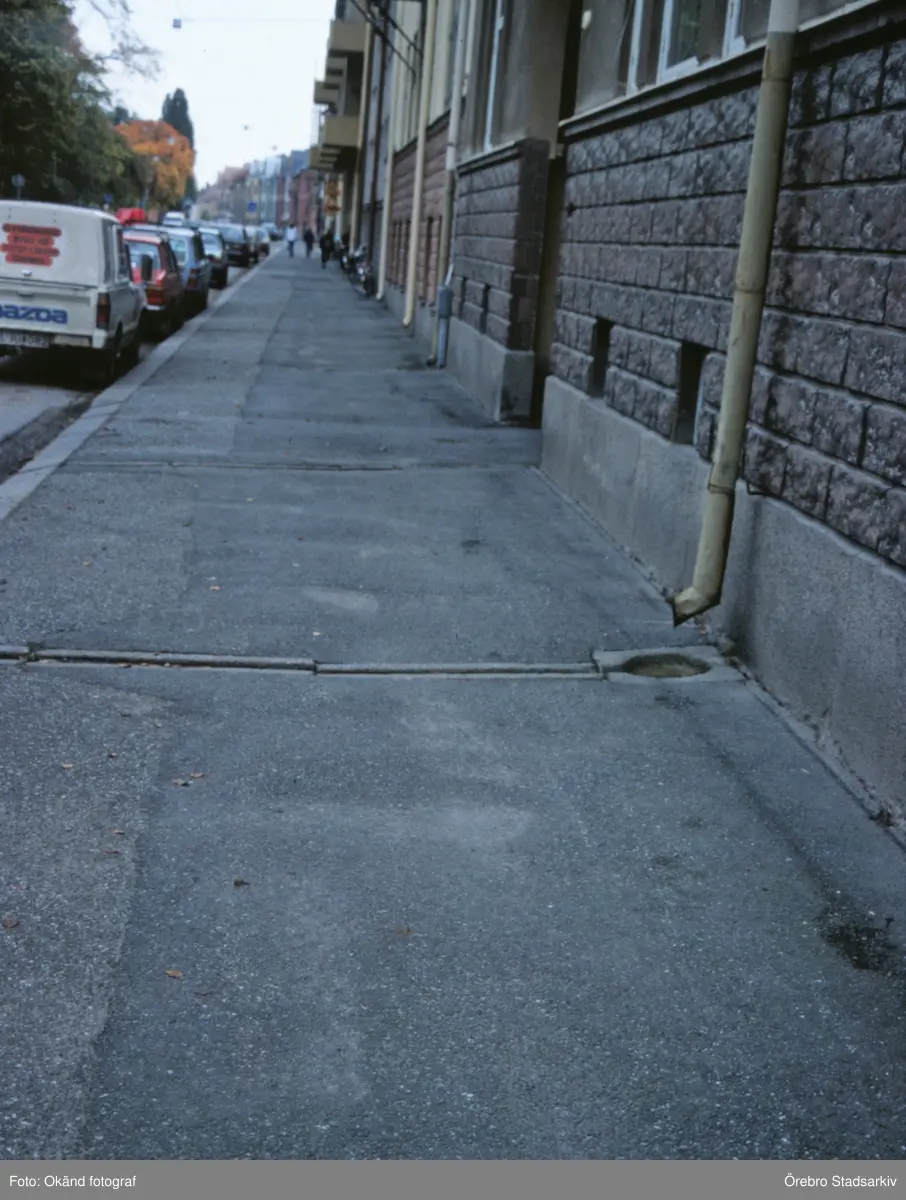 Vattenavrinning och asfaltering på gångbana, 1990-tal