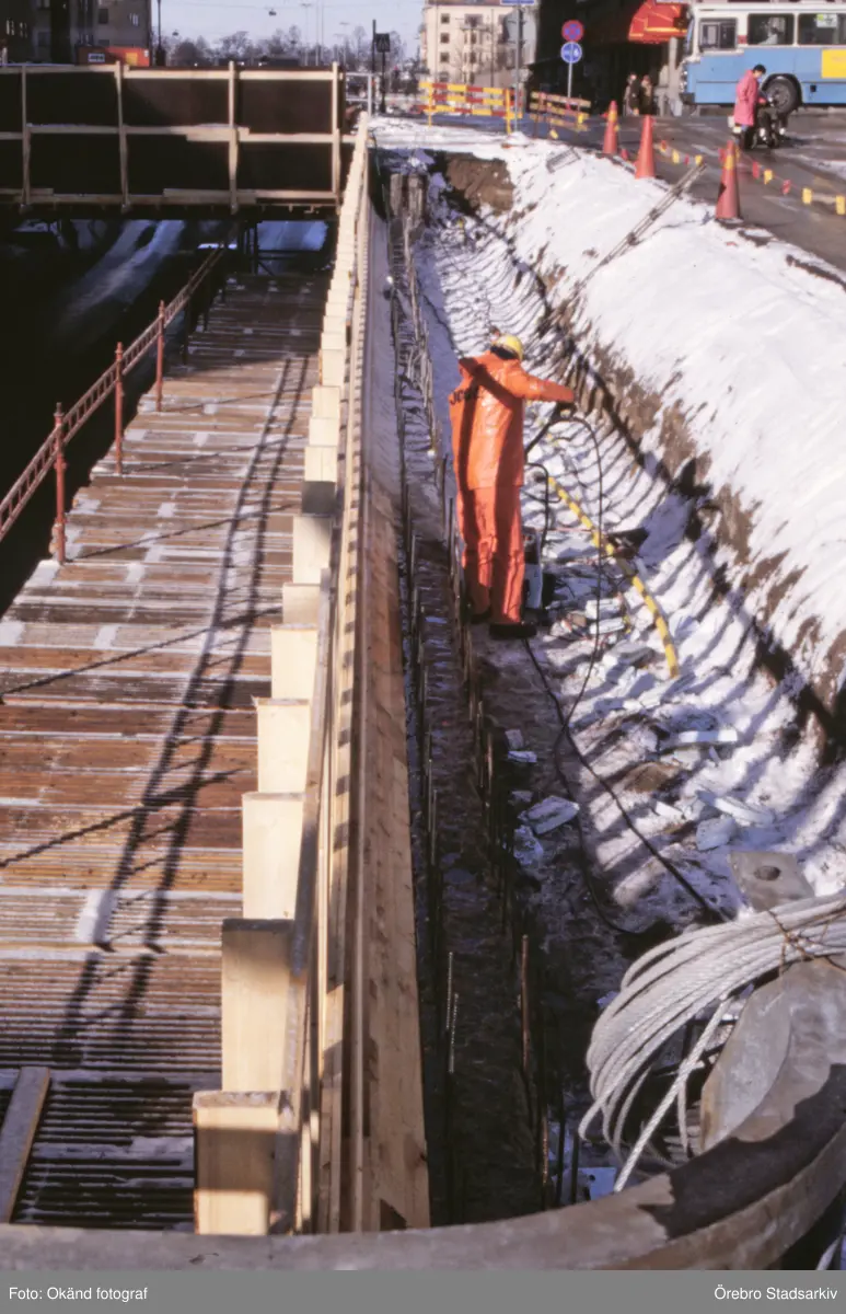 Arbete med vägg/taksektion av Rudbeckstunneln, 1990-tal