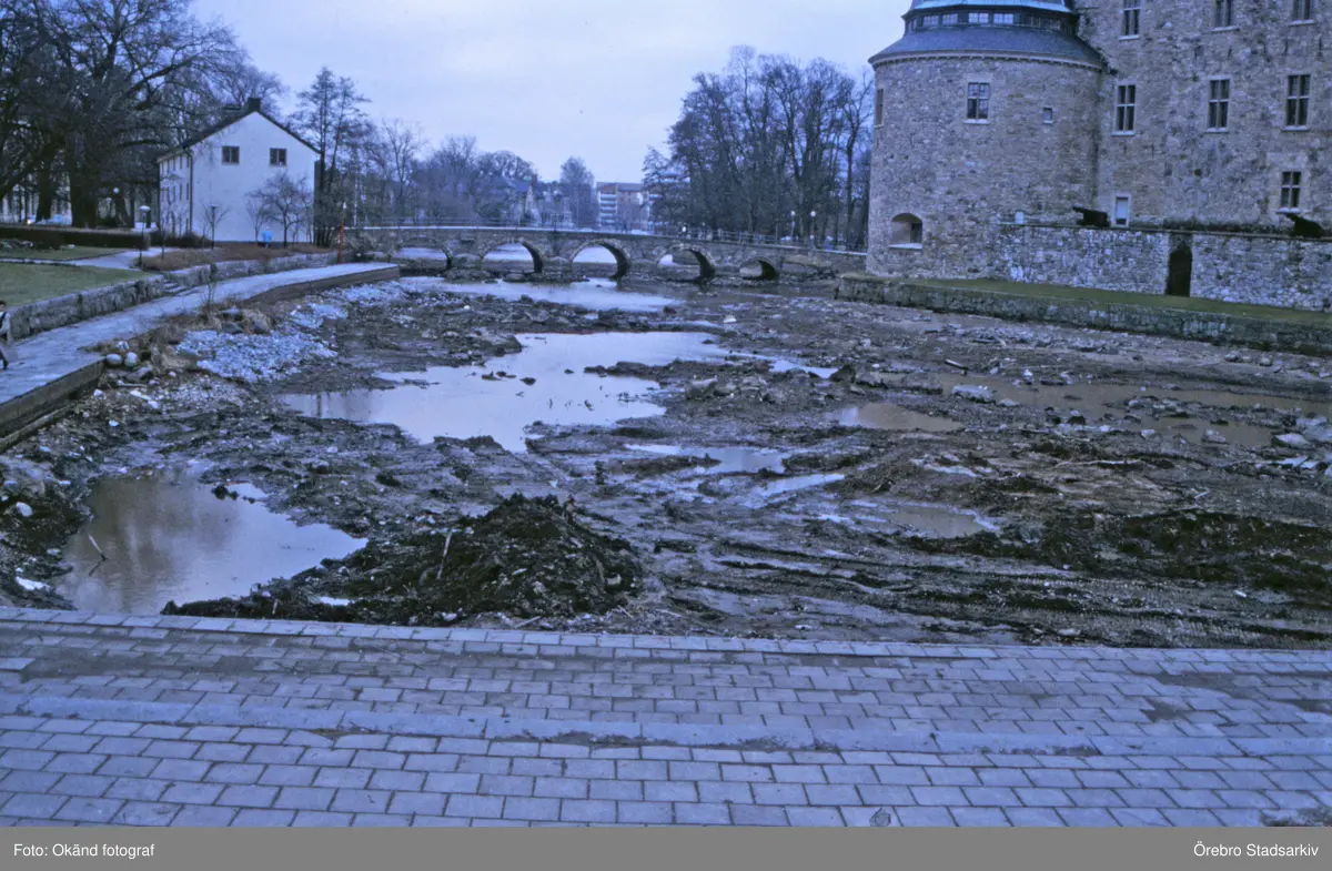 Svartån torrlagd mellan slottet och Henry Allards park, 1990-tal