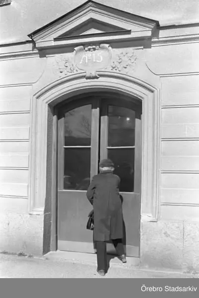 KVINNA GÅR IN GENOM DÖRR