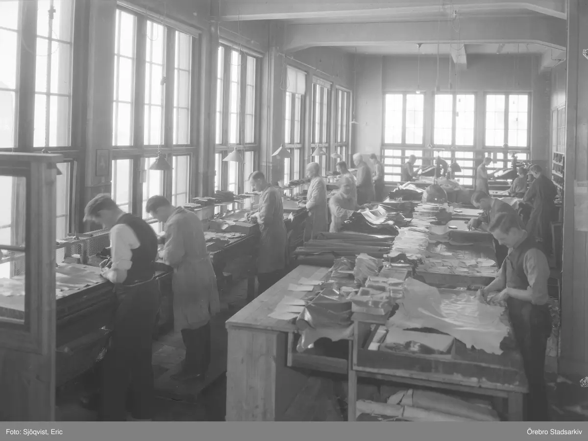 Tillskärning av läder på AB J.Persson & Co skofabrik, 1942