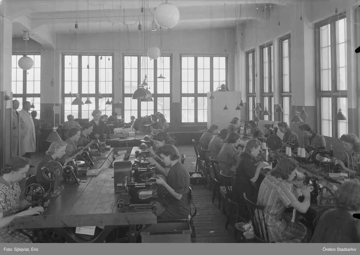 Titel: Nåtlingsarbete på AB J.Persson & Co skofabrik, 1942