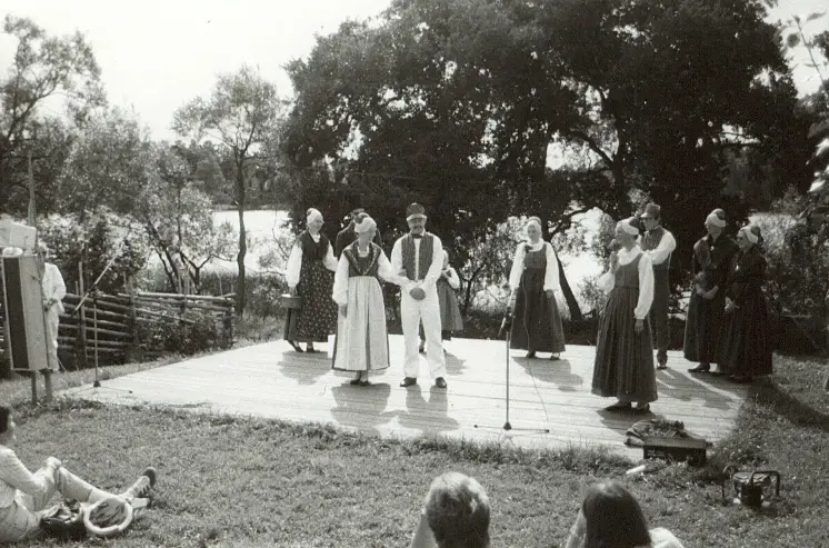 Hantverksdagar i Rönninge by i Täby. 28 aug 1987 med folkdräktsparad.