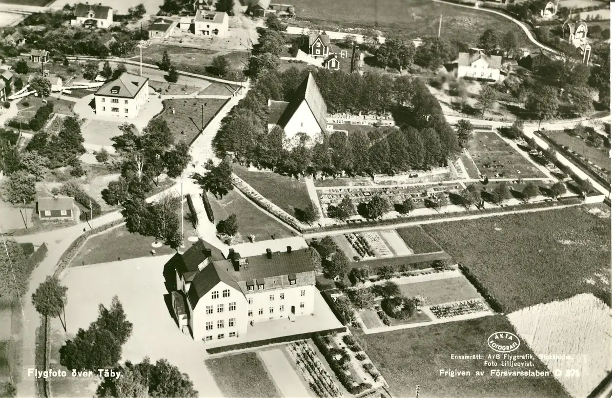 Flygfoto över Täby Kyrka