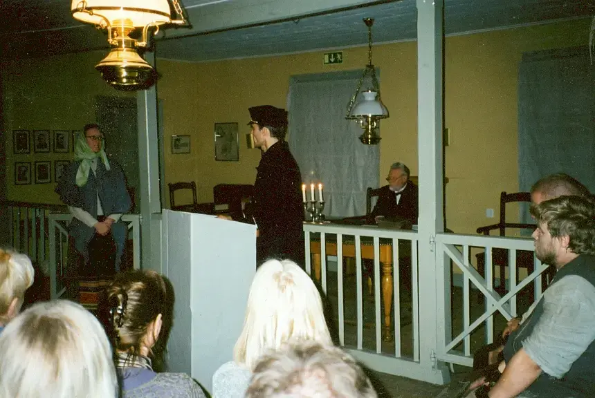Teater om Näringsbergsmordet i Haninge Tingshus.