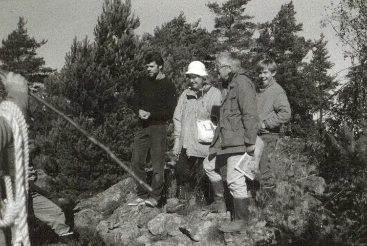 Fornborgsvandring i Salem sept. 1987 under ledning av Sven-Gunnar Broström.