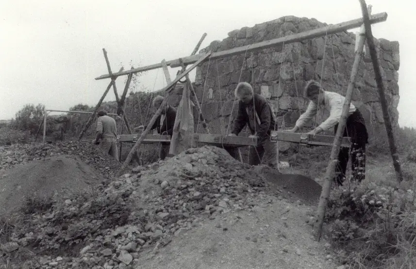 Titel: Sållning vid Hölö kyrkoruin 1988.