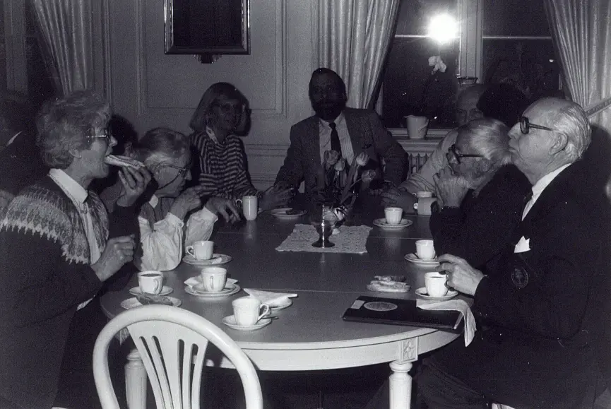 Styrelsen samlad på Åkeshovs slott februari 1989.