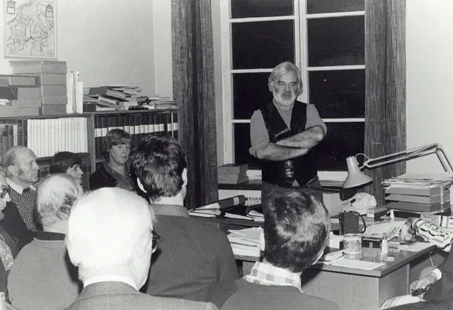Hembygdsförbundets studiebesök på Nordiska museets folkminnesamling 1980-11-27.