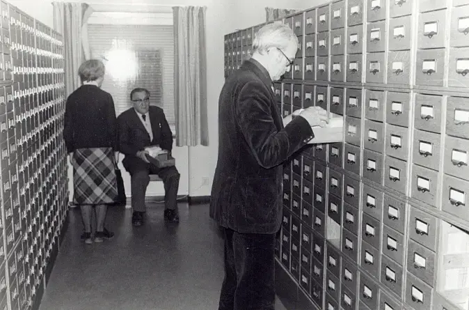 Hembygdsförbundets studiebesök på Ortnamnsarkivet och Dialekt- och folkminnesarkivet i Uppsala 1979-12-01