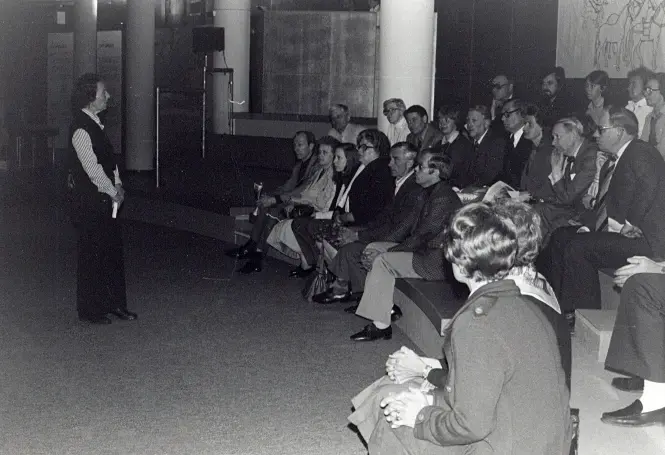 Hembygdsförbundets studiebesök på utställningen Båtgravar från Vendel, Valsgärde och Sutton Hoo! på Historiska museet 28/4 och 5/5 1980.