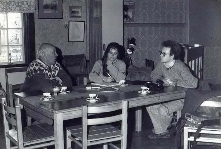 Titel: Catherine Couturier och Lars Kaijser intervjuar Omar Nilsson, Fasterna hembygdsförening under arbetet med inventering av hembygdsföreningar i Uppland 1986-87.