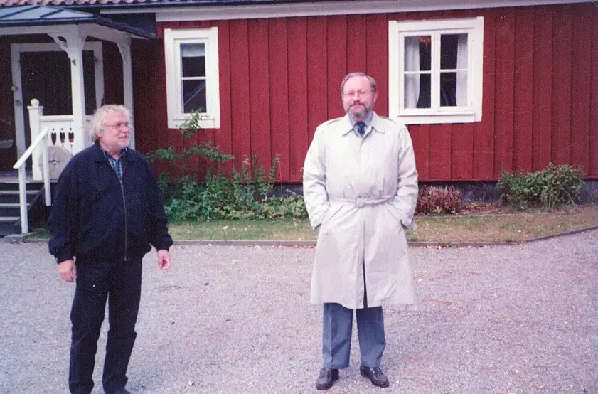 Personalutflykt med anställda i arbetsmarknadsåtgärder 2000. Bo Sigerlöw tar emot oss i Vasastugan i Grödinge.