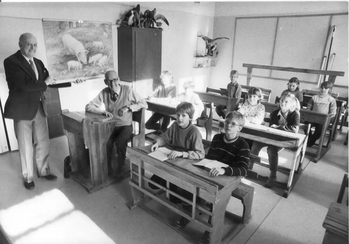 Jarneberg och rektor Gustavsson visar gamla skolan