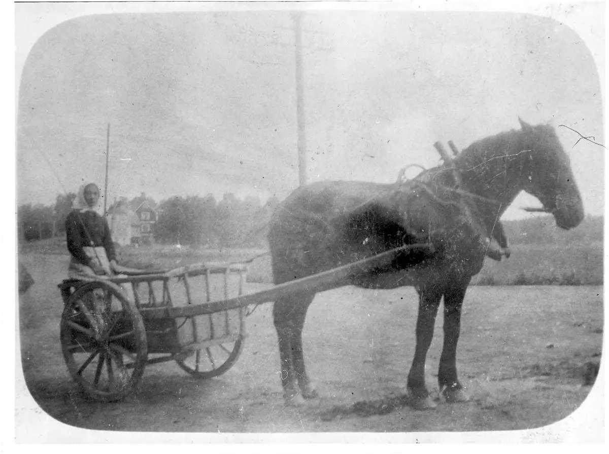 Gunhild Söderman på enaxlad vagn vid Ella Krog 1910